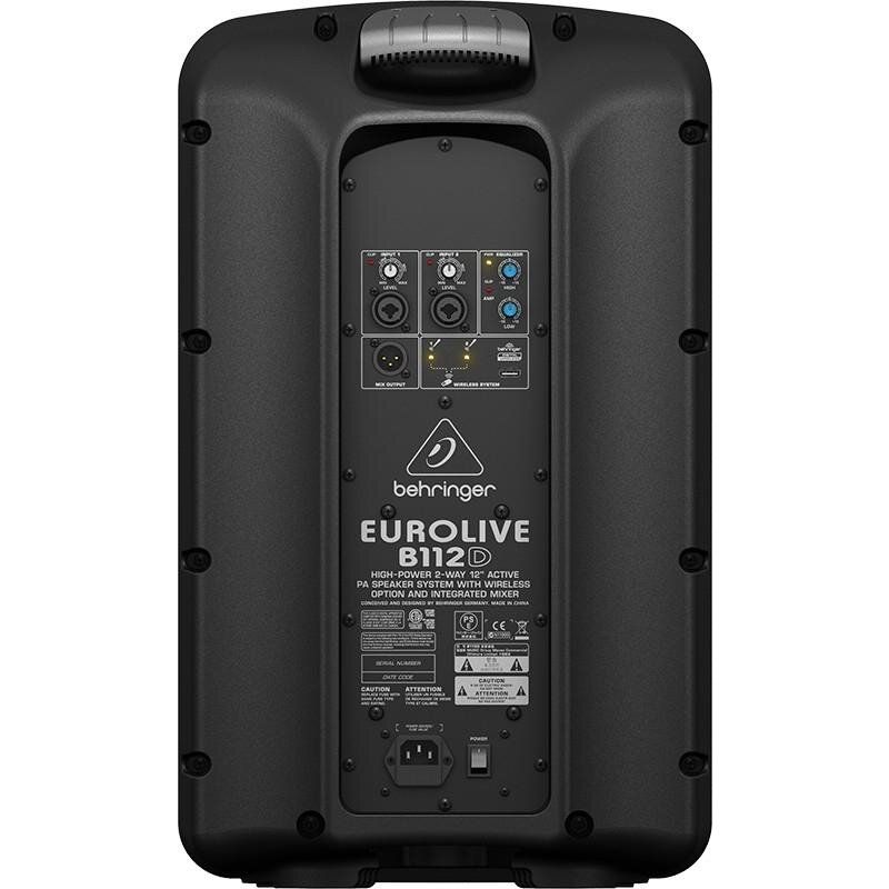 Behringer B112 D – надзвичайно функціональний і ефективний активний гучномовець, який пропонує відносно високу потужність, хороший звук при невеликих розмірах і малій вазі 12,3 кг. Оснащений 2-канальним мікшером з комбінованим мікрофонним/лінійним входом і двосмуговим еквалайзером, він може використовуватися для забезпечення звуку на подіях, концертах, зборах і спортивних подіях на відкритому повітрі та в приміщенні. Завдяки цим особливостям він дуже популярний серед шкіл і офісів, а також музикантів, що грають у клубах. Він ідеально працює з іншою доступною версією цього гучномовця B112MP3 з MP3-плеєром.