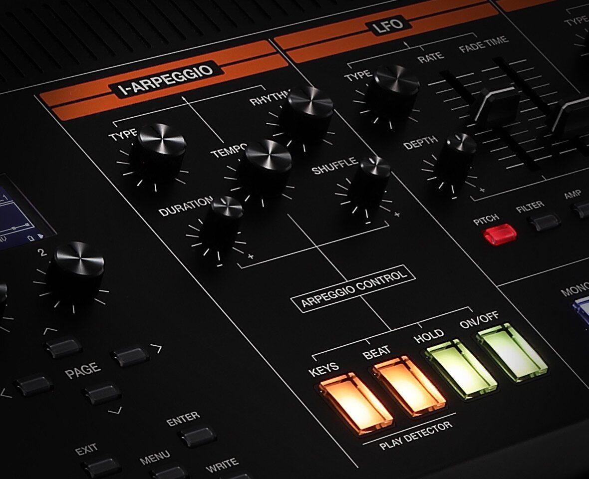 Потрібно щось дивовижне? I-Arpeggio в JUPITER-X — це арпеджіатор останнього покоління, який використовує штучний інтелект не лише для акомпанементу, але й для надихання. . I-Arpeggio використовує ваші ноти, ритми, фрази та створює цілі барабанні партії, басові лінії, акорди та арпеджіо. Він працює з кожною з п’яти частин JUPITER-X одночасно, а згенеровані шаблони можна змінювати та навіть експортувати в DAW. Це не звичайні мінусовки – це розумно згенеровані ритми і фрази, які урізноманітнюють живі виступи.